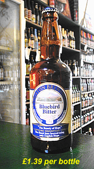 Coniston Brewing Co, Coniston, Cumbria Bluebird Bitter (4.2% abv) "Bluebird is a fine session ale with a light golden colour. The intense resinous and spicy hop character which is this beer's hallmark is derived from the use of unusual quantities (I assume copious - ed) of English Challenger hops, and Maris Otter malt. This beer is fermented slightly warm, giving soft fruitiness with a hint of geranium." This is my all-time favourite British bottled beer and at only 4.2% abv!! (Yes, I know it's contract-brewed by Brakspears, but when supply can't match demand...!) Chonkie